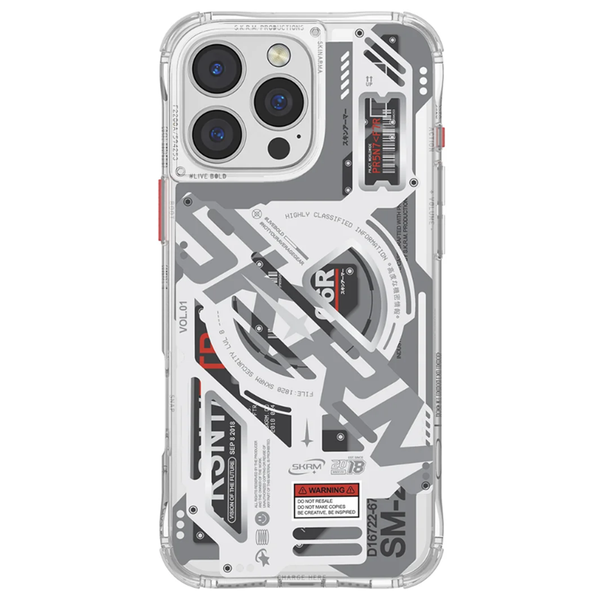 Mech-tech reinvented. Semi-clear protective case featuring EHKO's unique layered machine-esque aesthetic that hides a magnetic ring module designed for wireless charging. Customisable with interchangeable corner bumper lanyard loops to sling it on. - 8-feet drop protection with scratch resistance - Raised camera lens guard - Raised 360 degree
