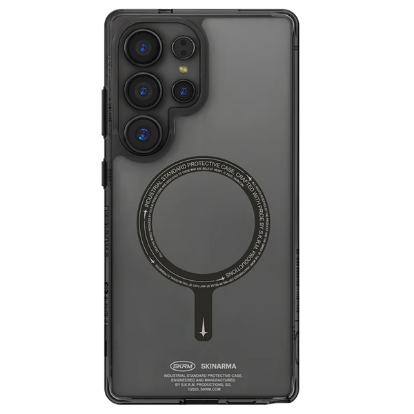 Cyber-tech reinvented with NOVA. All-round semi-clear protective case with a magnetic ring module designed for wireless charging, redesigned for the Galaxy S25 Ultra. - Semi-reflective magnet ring module accent - Raised camera lens guard - Raised 360º screen edges - Enhanced air-pocket corner protection - Co-moulded design with anti-yellowing TPU