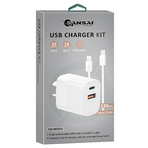 - USB-C Wall Charger with Cable (Charger + USB-C to USB-C Cable Kit)