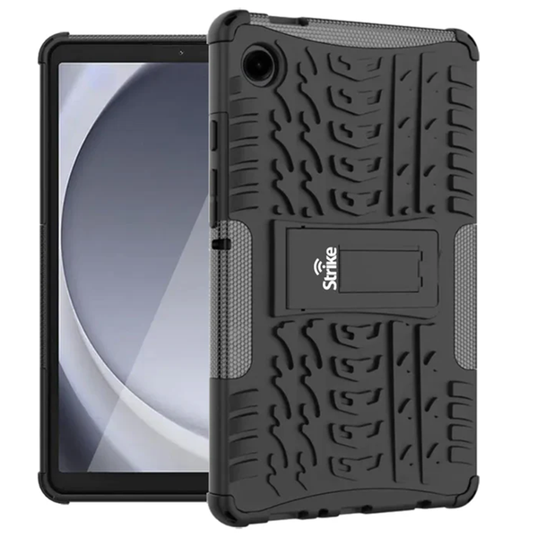 Introducing the Strike Samsung Galaxy Tab A9 Rugged Case - heavy-duty protection against impacts, dust, dents, and scratches, allowing you to take your device anywhere worry-free. Crafted with a rugged design and high-durability material, this Samsung Galaxy Tab A9 cover is tailored for an active lifestyle and enterprise use. Samsung Tab A9 case guarantees unrivalled protection whether it's outdoor adventures, daily use, or business operations. Dual-Layer Armor: This Samsung Galaxy Tab A9 rugged case features a dual-layer hybrid structure, combining a rugged hard PC outer shell and a high-quality silicone inner layer for unmatched protection. Built-In Viewing Stand: Offers convenient horizontal viewing and enhances your grip when using your device. Effortless Accessibility: Provides easy access to crucial device components, including the charging port, jacks, power, and volume buttons, with a raised bezel safeguarding the camera lens. Enterprise-Grade Toughness: Engineered to withstand demanding fields such as warehousing, logistics, manufacturing, and transportation, the ideal Samsung Galaxy Tab A9 case for any lifestyle. Meets Military Standards: Conforms to the rigorous drop-test standards established by the US Department of Defense MIL-STD-810G 516.7.