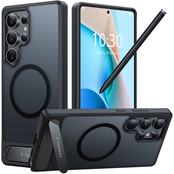 Torras Pstand Galaxy S25 Ultra 5G Case - Black MagSafe Compatible - Built-in Versatile Seamless Stand
