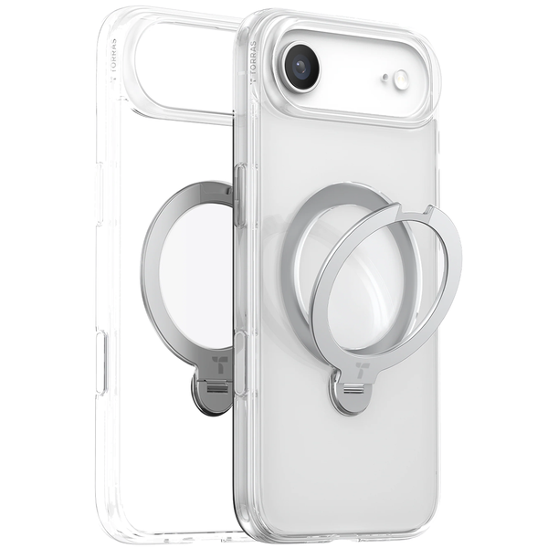 Torras Ostand Spin iPhone Air (6.5") 2025 Case - Clear , All in One: Magnetic / Stand / Ring Holder - 360 Spin
