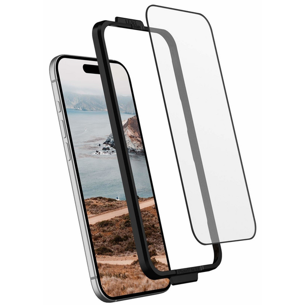UAG's Glass Screen Protectors are designed to keep your iPhone display safe from scratches and abrasions while maintaining exceptional clarity and touch sensitivity. This screen protector features a thin yet durable construction that provides highly responsive touch accuracy and pristine HD clarity. An oleophobic coating repels natural skin oils, minimizing fingerprints and smudges, ensuring your screen remains clear and easy to view. The protector is precisely cut for a case-friendly fit with UAG cases, making it the perfect addition to your device. Installation is quick and easy with the included applicator kit, ensuring a flawless fit every time. With the UAG Glass Shield, your screen will stay clean, respond accurately to your touch, and enjoy strong, everyday protection. - Durable Protection: Scratch-resistant, double-strengthened tempered glass withstands impacts, passing steel ball drop tests up to 6 ft. (1.8 m).- Anti-Fingerprint Coating: Oleophobic layer prevents smudges and fingerprints for a clear, HD viewing experience. Black border creates a seamless edge screen-to-case transition design for a sleek, premium appearance.- Precision Touch and Fit: Maintains highly responsive touch sensitivity and is perfectly designed for compatibility with UAG cases.- Reinforced Edges: Designed to prevent chips and cracks, stopping cracks from spreading for longer-lasting protection.- Installation Kit Included: Apply the glass screen protector quickly and easily at home with the included applicator and cleaning kit. Each kit comes with an installation frame, microfiber cloth, wet wipe, and dust removal sticker-everything you need for a fast, bubble-free install. Protect your device with the UAG Glass Shield, combining strength, clarity, and ease of use for everyday protection..
