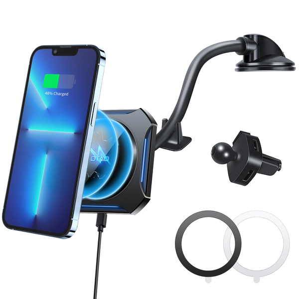 - 2 Installation Ways, Magsafe Compatible, Super Suction Power:11N (1100g) of powerful magnetic force, 18 * N52H magnets, 360° Rotationl & One Hand Operation