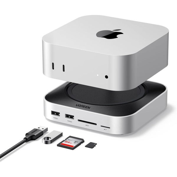 UGREEN 11-in-1 USB-C Docking Station Massive 8TB Expandable Storage: Unlock the full potential of your Mac Mini M4 with up to 8TB of ultra-fast internal storage. The dock supports M.2 NVMe SSDs (2230/2242/2260/2280 sizes). Enjoy blazing 10Gbps transfer speeds for large files, 4K editing, or backups-all while keeping your setup sleek and clutter-free. (SSD not included.) 11-in-1 High-Speed Connectivity Hub: Turn your Mac Mini into a workstation with 11 versatile ports, including 3× USB-A 3.2 (10Gbps), 2× USB-A 3.0 (5Gbps), 2× USB-C 3.2 (10Gbps), and a UHS-II SD/TF card reader (170MB/s). Flexible power options: Draws power from your Mac Mini or use an external adapter (recommended for multi-device setups). Flawless Wi-Fi Without Interference: No more dropped signals! The dock's conductive paint shielding blocks 5G Wi-Fi interference, ensuring stable, high-speed wireless performance-ideal for streaming, video calls, or large downloads. Precision-Engineered for Mac Mini M4: Designed to perfectly match your Mac Mini's curves, this dock blends seamlessly while adding functionality. Features include a bottom-groove power button (turn on your Mac without lifting it) and anti-slip silicone pads for stability and scratch protection. Effortless Setup &; Tidy Workspace: The included 4cm short cable keeps your desk neat, while the compact design maximizes space. Whether you're a creative pro or a multitasker, this hub delivers storage, speed, and connectivity in one elegant solution.