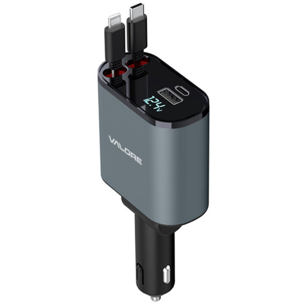 Valore AC207 4-in-1 Car Charger with Bulit in Retractable Cables