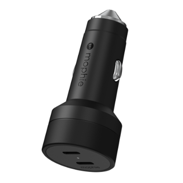 The 60W dual USB-C car charger plugs into any vehicle’s auxiliary port.