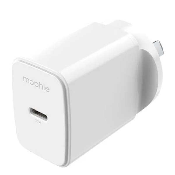 ZAGG Mophie Essentials ACC Power Adapter USB-C 25W PD ANZ - White Get rid of big, bulky power adapters. The USB-C 25W PD output provides fast, powerful charging in an ultra-compact design for travel, home, and office. Built using quality materials to ensure maximum performance and connectivity with a high-speed USB-C PD output delivers up to 25W of power to your smartphone, tablet or other USB-C devices. It fits easily in your bag-or even your pocket!-so you can get a fast charge anywhere you plug in.
