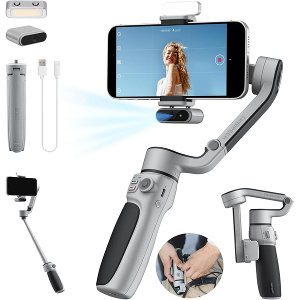 Voice Control - Say "Hey Cami" to CQ5 Say "Hey Cami" to activate the intuitive voice assistant to elevate your experience. Now you can command your stabilizer with just a word, freeing up your hands and taking your shooting experience to the next level. AI-Powered Tracking The AI tracker can detect hand gestures, allowing for touchless control from a distance. Whether you're vlogging solo or capturing action shots, the tracker acts as your personal camera operator, ensuring smooth, effortless recording even when you're far from the camera. Extendable Rod - For Wider Visions ZHIYUN CQ5 is designed with a built-in extension rod, which allows you to effortlessly extend your reach and capture stunning wide-angle shots. Get creative with your shooting angles and unlock a whole new world of photographic possibilities. Magnetic Lighting - For Quality Footage CQ5 features magnetic contact points at both ends of the phone clamp free from cumbersome cables. Add an extra fill light to enhance your shots on the fly. Whether you're shooting in low light conditions or just want to add that professional touch, you're always ready to capture stunning, high-quality footage. Mastery at Your Fingertips With easily visible working modes, you're always just one press away from capturing that perfect shot. The dual-function side wheel puts even more control in your hands. Seamlessly adjust your focal length or fine-tune the brightness of the magnetic fill light, all with a simple twist. Foldable Design CINEPEER CQ5 is the portable stabilizer that fits well in your pocket. It's your go-anywhere, film-anything companion. With a sleek fold-and-go design and a sophisticated slide-lock mechanism, it's elegance and ease, all in one. Create Intelligently And Freely Packed with a variety of ready-to-use shooting templates, ZY Cami turns even beginners into skilled content creators. No film school required, let the app do the work for cinematic, blockbuster-quality results. Rock-Solid Stability in Every Shot Our advanced technology delivers incredibly smooth footage that looks almost as steady as a tripod shot, even when capturing fast-paced action. The quick and easy phone mounting structure saves you from repeated balancing adjustments. No matter what size smartphone you're using, you'll be ready to shoot in seconds. All-Day Shooting Made Easy CQ5 boasts an impressive battery life of up to 11 hours and supports charging while using, ensuring you can capture everything from sunrise to sunset without missing a beat. To charge your CQ5, you'll need just two hours to be back to full power and ready for your next adventure. *The battery life data was obtained in a ZHIYUN lab environment with the gimbal stationary. Actual usage may vary.