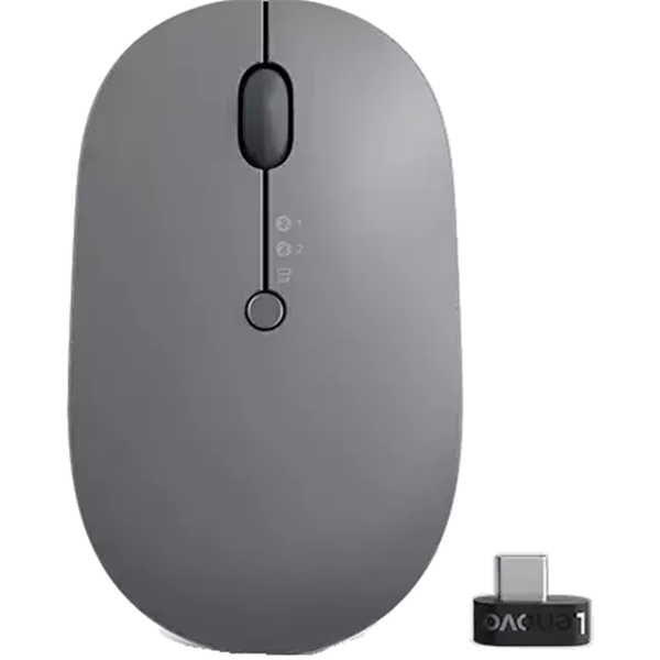 Designed to be the only mouse you need, the Lenovo Go Wireless Multi-Device Mouse can be paired with up to 3 devices and effortlessly cycle between them with a push of a button. Beyond its multi-tasking capabilities, this productivity powerhouse can be used on nearly any surface and rarely runs out of battery, thanks to its blue optical sensor and wireless Qi or wired USB-C fast-chargeable battery. - Compact ambidextrous design- Blue optical sensor, tracks on most surfaces- Silent left/right keys with 2-way scroll wheel (up / down)- 800 - 1600- 2400 on-the-fly adjustable DPI- Wireless and connects to up to 3 devices: 1 x USB-C dongle, 2 x Bluetooth 5.0- Supports Lenovo Unified Pairing Receiver- Supports Bluetooth Switf Pair- Quick switch button to jump control across devices- Rechargeable, 2 - 3 months use, 1.5 - 2 hours to fully charge (may vary based on usage)- Charges wirelessly through Qi or by USB-C (cable provided)- Programmable "Utility Button" on the side- Default functions optimized for Teams calls The one true mouse Designed to be the only mouse you'll ever need, the Lenovo Go Wireless Multi-Device Mouse can be paired with up to three devices and effortlessly cycle between them with the push of a button. Beyond its multitasking capabilities, this productivity-powerhouse can be used on nearly any surface and rarely runs out of battery, thanks to its blue optical sensor and wireless Qi or wired USB-C fast-charging battery. The pinnacle of versatility The Lenovo Go Wireless Multi-Device Mouse supports pairing up to three devices using USB-C and Swift Pair-supported Bluetooth® with a quick-switch button. The pinnacle of versatility blade. ** and Swift Pair-supported Bluetooth with quick-switch button. Beyond 3-device pairing, you'll also enjoy the ability to use a Lenovo unified pairing receiver to connect other devices with one dongle. Plus, its blue optical sensor ensures you experience maximum precision on almost every surface. Multitask from multiple locations Crafted as an all-in-one solution, this mouse features an on-the-fly adjustable DPI sensitivity and a programmable utility button with shortcuts configured for Microsoft Teams meetings by default-plus, it's portable enough to take with you anywhere. Charge ahead With a fast-charging battery that provides up to three months* of use on a single 1.5-hour* charge and supports both wired USB-C and wireless Qi charging, the Lenovo Go Wireless Multi-Device Mouse is hard to beat.