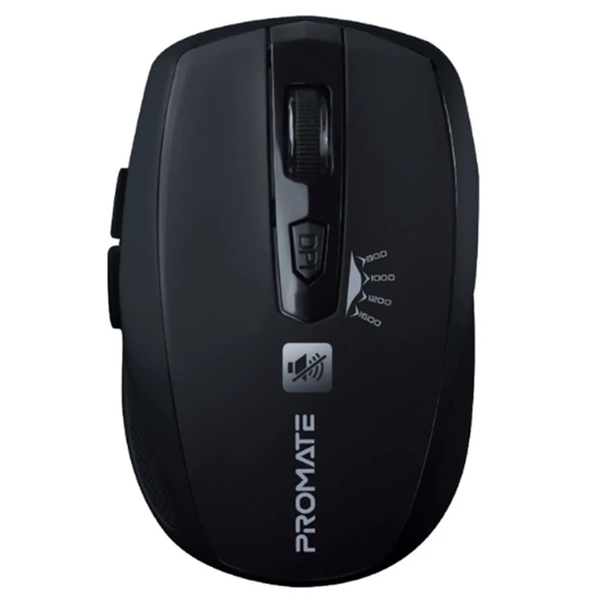 PROMATE Wireless Mouse with Smooth Scrolling. Sensor Resolution 800/1000/1200/1600DPI. Wireless range 6-10m. Compatible with Windows and Mac. Black.