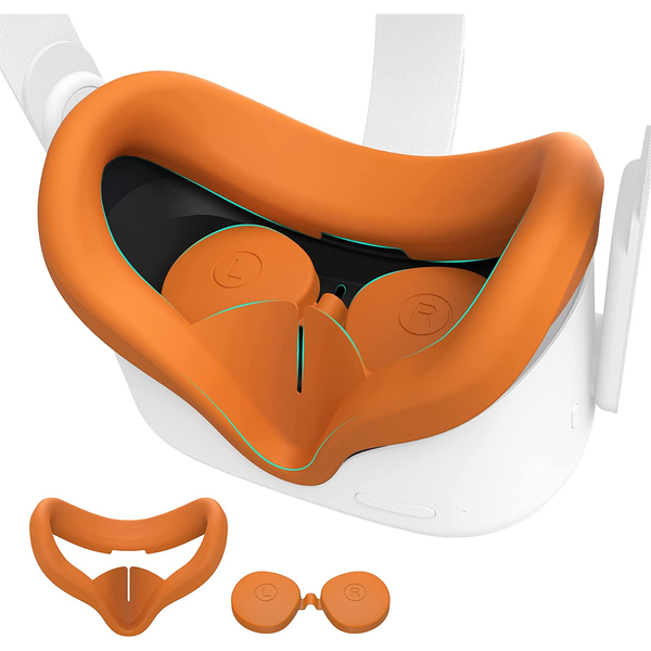 Kiwi Design For META Oculus Quest 2 Orange Colour Silicone Face Cover Pad with Lens Protector, Enhanced Support