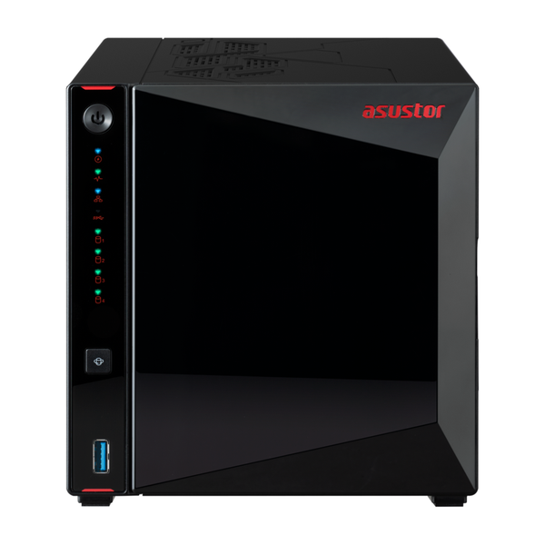 AS5404T The Best NAS 4 FlashHard Drives + Flash SSDs = The best of both worlds - Quad-Core 10 nm Intel Celeron N5105 CPU- 4x M.2 slots for NVMe SSDs- 4 GB of DDR4-2933 RAM- Dual 2.5-Gigabit Ethernet ports- 3x USB 3.2 Gen 2 at 10 Gbps- HDMI 2.0b- Aesthetically pleasing M.2 SSD heat dissipation thermal vents- Enjoy, download, upload and stream content with 4K transcoding- Supports Wake on LAN and Wake on WAN Enthusiast-Grade NAS with Entry-Level Pricing Four M.2 slots for NVMe SSDs to accelerate volumes or assist in content creation- Easy content creation and storage. Adobe certified- Cross-platform live streaming and real-time backup of live streams with convenient editing- Easy local and remote collaboration ASUSTOR Storage with Adobe Creative Cloud ASUSTOR is an official Adobe Partner for video and audio solutions