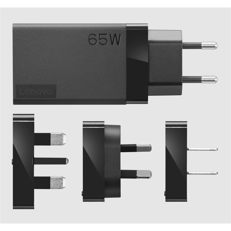 Changing the way you travel for business or pleasure, the Lenovo 65W USB-C AC Travel Adapter eliminates the need for multiple chargers. Power your USB-C devices any time with 4 interchangeable plugs (US, EU, AU, UK) for 100V - 240V outlets at hotels, cafes, or airports. When you're done, just pack the compact adapter in the included pouch, and you're ready to adventure.
