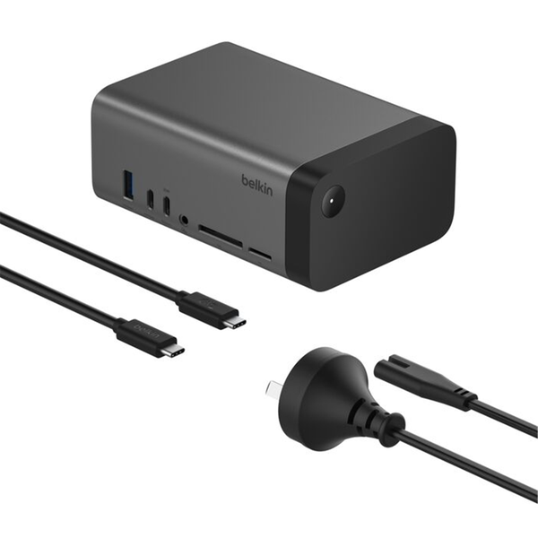 - Integrated GaN technology with 146W PD - up to 96W PD to host and up to 50W to peripherals - Upload image/video files with less lag time via up to 10Gbps data transfer speeds - Smaller form factor and built-in 150W power supply reduces clutter and the need to carry extra weight - 100% plastic-free packaging- Protected by Belkin 6-point safety system:Over-current