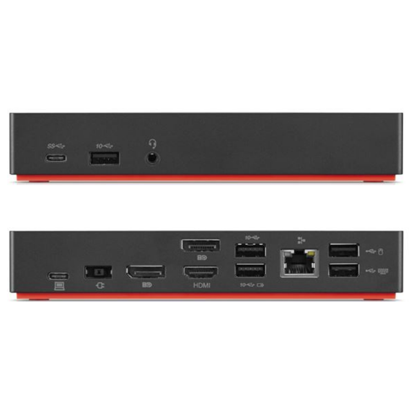 The ThinkPad Universal USB-C Dock is a welcome innovation docking that takes users beyond tradition and into the realm of limitless potential. Experience universal compatibility with dynamic power charging max as 100w to notebooks^, automated firmware updates, next-level plug-and-play. It's perfect for mixed PC environments too, giving user's the freedom to connect any USB Type C industray standard notebooks. ^ThinkPad Universal USB-C Dock could charge Notebook max as 100W with 135W Slim Tip power adapter (sold seperately) connected to the dock. DISCLAIMER: Lenovo USB-C &; Thunderbolt Docks function with notebooks that support industry standard USB-C Alt-Mode or Thunderbolt protocols through their Type C port. Lenovo USB-C and Thunderbolt Docks support additional features, such as MAC address passthrough, WOL and mirrored power button, on most Lenovo ThinkPad notebooks, but such features may not be available on certain other Lenovo notebooks or non-Lenovo branded notebook systems. Features &; Benefits - One dock, no limits: Engineered for performance, the ThinkPad Universal USB-C Dock quickly pays for itself with increased productivity, enhanced dynamic power charging to Notebook, max 100W charging. If you can think it, your dock can do it.- One cable, no hassle: With 11+ thoughtfully placed ports, the ThinkPad Universal USB-C Dock delivers unmatched performance while decluttering your desk.- Entire fleet, one manager: The ThinkPad Universal USB-C Dock comes packed with basic and advanced solutions engineered to make managing an entire fleet of docks effortlessly efficient. It could support tranditional IT tools like: PXE boot, WOL, and MAC address Pass Through on ThinkPad notebooks, but also provide silent firmware updates. Silent reboots. Remote device queries. It's an IT manager's dream.