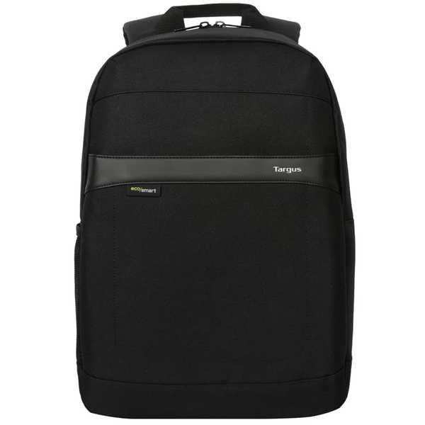 Targus 12-16" GeoLite EcoSmart Plus Backpack - Black Get professional style with the 12-16" GeoLite EcoSmart® Plus Backpack. Featuring a clean, lightweight look, it's ideal for professionals who want laptop protection and organization in a modern silhouette. The padded laptop compartment protects laptops of varying sizes from everyday bumps while the padded back panel delivers added comfort for the everyday carry. Get organized with a zippered front pocket and interior zip mesh pocket, and stay hydrated with the convenient water bottle pocket. With its water-resistant exterior and earth-conscious interior, this pack delivers on style, functionality, and sustainability, keeping you and your gear ready for the long haul.