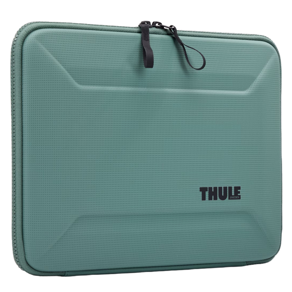 A sleek, molded laptop sleeve for 14-inch MacBook Pro®, 13-inch MacBook Air®. The rigid exterior and edge protection safeguard your device, while the clamshell design allows you to work directly out of the case. The Thule Gauntlet interior lining and trim materials are now 100% recycled. For laptops up to 14" Fits a 14" MacBook Pro, 13" MacBook Air, or other laptops up to 31.3 x 22.1 cm / 12.3 x 8.7 inches. Robust protection Rigid exterior and enhanced corner and edge protection designed to safeguard your device. Padded interior Padded interior protects hardware from bumps and scratches. Clamshell design Clamshell design allows you to work directly out of the case. Recycled materials 100% recycled interior fabrics and webbing, partially recycled exterior fabric and foam.