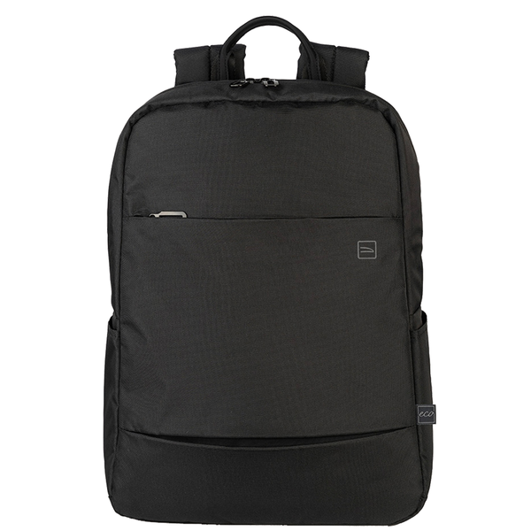 Backpack for laptop 15.6" and MacBook Pro 16" Lightweight backpack in fabric made from recycled plastic featuring a modern, compact design. Perfect for MacBooks and laptops up to 15.6". The adjustable, padded shoulder straps together with the ergonomic back and flat, external, organizer pocket on the front, make it convenient and useful for both work and leisure. - Trolley strap- Padded inner compartment for laptop- Organizer pocket on the front with a zip closure- Internal mesh pocket for accessories- Adjustable, padded shoulder straps- Side pockets- Military-style backpack made of recycled plastic