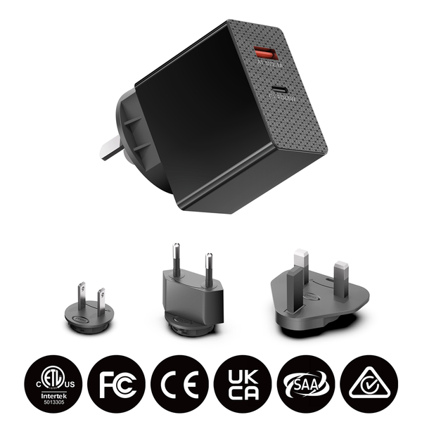 KFD 65W GaN - Travel Pack With US/EU/AU/UK Plug USB-C & USB-A 12W PD Wall Charger