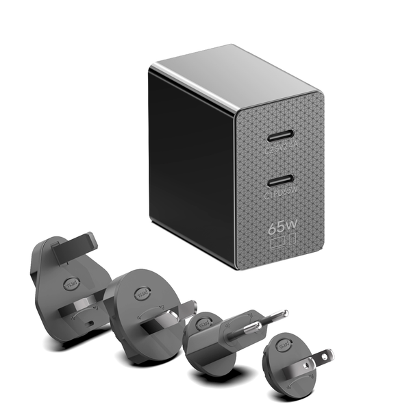 KFD Travel Pack with US / EU / AU / UK Adapter 65W GaN Dual USB-C PD Wall Charger