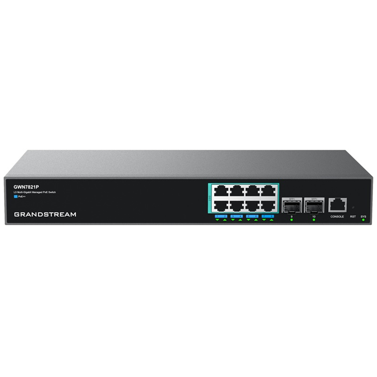 Grandstream GWN7821P 10-Port 10G L3 Managed PoE Switch (240W) - 10G SFP+ x2 / 2.5GbE PoE++ x8