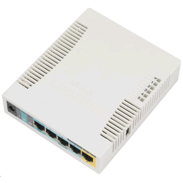 The RB951Ui-2HnD is a wireless SOHO AP with a new generation Atheros CPU and more processing power. It has five Ethernet ports, one USB 2.0 port and a high power 2.4GHz 1000mW 802.11b/g/n wireless AP with antennas built in. It has a 600MHz CPU,128MB of RAM and PoE output function for port #5 - it can power other PoE capable devices with the same voltage as applied to the unit. Maximum load on the port is 500mA. Package contains RouterBOARD 951Ui-2HnD in a plastic case and power adapter.