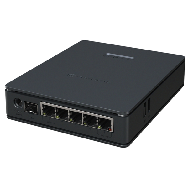 MikroTik hAP ax S (E62iUGS-2axD5axT) Dual-Band Wi-Fi 6 Access Point and 5 Port Gigabit Router. MikroTik's most cost-effective Wi-Fi 6 access point yet. Triple-chain 5 GHz radio (up to 900 Mbit/s throughput), dual-band Wi-Fi 6, 5x Gigabit Ethernet ports, and a 2.5G SFP. Powered by a dual-core ARM CPU, with PoE-in/PoE-out flexibility, a standard DC jack, USB, and a sturdy high-end enclosure that can be mounted on the wall.