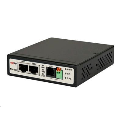 NV-202 is a VDSL2 single port bridge equipped with two 10/100Mbps Ethernet ports that provide an economical solution for commercial-grade applications. Compliant with ITU-T G.993.2 VDSL2 standard, the NV-202 supports a maximum bandwidth of up to 100Mbps symmetric in VDSL2 Profile (30a) solution. The NV-202 also supports both central office (CO) and customer-premises equipment (CPE) modes selectable through DIP Switch.Since VDSL2 has the characteristic of higher bandwidth over shorter distances, the ideal architecture for Telcoms is to use fiber optic lines as the backbone and a VDSL2 line as the last mile into the home or office. With outstanding throughput, the NV-202 can complement a fiber network to offer the best solution for delivering Triple play(Video/Voice/Data) or home