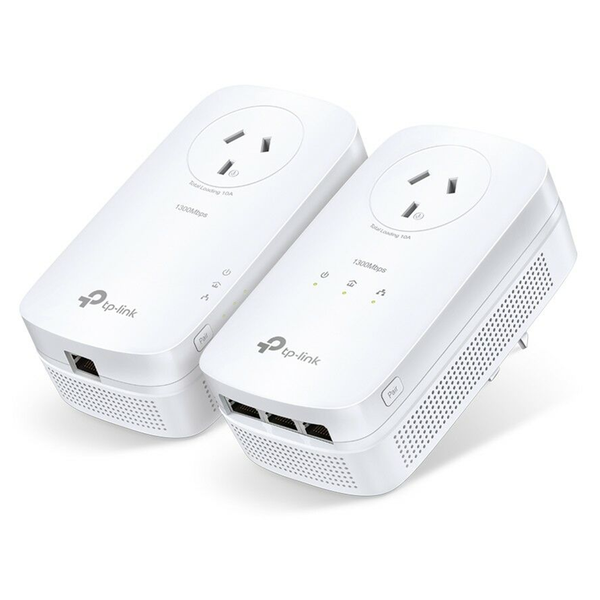 TP-Link TL-PA8033PKIT AV1300 Powerline Kit - HomePlug AV2 standard compliant, high-speed data transfer rates of up to 1300Mbps, supports all your online needs- Line-Neutral/Line-Ground 2×2 MIMO with Beamforming ensures larger range, higher transmission capacity and more stable connections- 3 gigabit ports create secure wired networks for desktops, smart TVs or games consoles