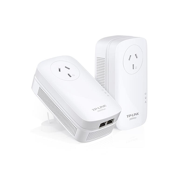 AV2000 2-Port Gigabit Passthrough Powerline Starter Kit TL-PA9020P KIT- HomePlug AV2 standard compliant, high-speed data transfer rates of up to 2000Mbps, supports all your online needs- 2X2 MIMO with Beamforming establishes multiple simultaneous connections for you to enjoy higher powerline speeds and greater stability- 2 gigabit ports create secure wired networks for desktops, smart TVs or games consoles- Integrated power socket ensures no power outlet goes to waste- Plug and play, no configuration required- Patented Power-Saving Mode automatically reduces power consumption by up to 85% Take Your Powerline Network to the Next LevelWith advanced HomePlug AV2 MIMO, the TL-PA9020p delivers high speed of up to 2000Mbps over Powerline to provide superior network performance that supports all of your online needs. With a lag-free connection, you will never miss out again. An Exclusive Fast Lane for Your Favorite DevicesThe TL-PA9020P creates fast, high performance wired connections that support all of your favorite devices, like 4K HDTV. Now you can plug in to enjoy an exclusive fast lane out of a crowded network without slowing down. Fluid Streaming and Gaming with 2X2 MIMO2X2 MIMO with Beamforming Technology significantly improves speeds, especially during peak hours. More Stable Connections2X2 MIMO is like adding extra lanes to a highway. It establishes multiple simultaneous connection for you to enjoy higher speeds and greater stability.Enhanced Long Distance Performance2X2 MIMO with Beamforming Technology also offers the benefit of improved coverage throughout the home, particularly for previously hard to reach outlets.Wiring up with Gigabit SpeedsConnect to Gigabit speeds for your smart TVs, game consoles, computers and network attached storage devices. Just use an Ethernet cable to attach your devices to the Powerline adapter to get started!Simplified Network for a Better Life, Plug, Pair and Play!1. First, connect your TL-PA9020P to the router2. Then, plug in another one wherever you need extra coverage3. Finally, press the "Pair" button on each adapterNo Power Outlet is Going to WasteThe integrated power socket means that you can still get power from the outlet for your other devices. Simply plug your device into the integrated socket the same way you would with a normal wall outlet. The built-in noise filter also helps to eliminate electrical signal noise that might otherwise affect powerline transmission performance.