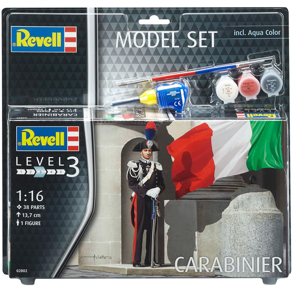 A carabinier is in principle a soldier armed with a carbine. A carbiniere is a carabiniere musket or rifle. Carabiniers were first introduced in the late 17th century and were commonplace by the beginning of the Napoleonic Wars in Europe. The word is derived from the identical French word carabinier.Historically, carabiniers were generally (but not always) horse soldiers. The carbine was considered a more appropriate firearm for a horseman than a full-length musket, since it was lighter and easier to handle while on horseback. Light infantry sometimes carried carbines because they are less encumbering when moving rapidly, especially through vegetation, but in most armies the tendency was to equip light infantry with longer-range weapons such as rifles rather than shorter-range weapons such as carbines. In Italy and Spain, carbines were considered suitable equipment for soldiers with policing roles, so the term carabinier evolved to sometimes denote gendarmes and border guards.Note: Assembly required. Paint and glue included.