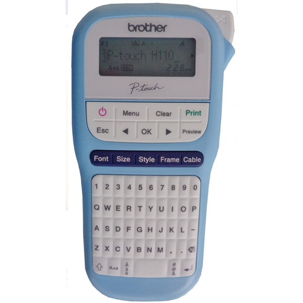 PTH110LB Compact Handheld Labelling Machine Design and print durable labels using the built-in keyboard and graphic display. This feature packed labelling machine prints durable labels up to 12mm in width. Choose from several fonts, font styles, frames and symbols to customise your labels to your exact needs. - Create durable labels up to 12mm in width- High speed printing - up to 20mm/second- Easy-type keyboard and graphic LCD- Many fonts, frames and symbols- Cable labelling function to quickly make labels for wrapping around cables Perfect for the office or workplace Printing labels up to 12mm in width, the PT-H110 is the ideal introductory label printer for general labelling around your office or workplace. Print durable labels in seconds This compact and easy-to-hold label printer has dedicated quick-access keys to quickly choose from the various functions to easily format your label. The 20mm/second print speed makes light work of your labelling jobs. Built-in graphic display The 16 character LCD makes label creation easy. Preview then select the frames and symbols you want including on your label, before printing. Cable marking Clearly mark your AC adapters and other plugs and cables using the cable marking function. Prints a flag label that is wrapped onto itself for easy identification. Many fonts, frames and symbols Choose from 3 fonts, 10 character styles, 15 frames and over 250 symbols to customise your labels however you want. So many uses around your workplace There are many uses for long lasting, durable P-touch labels such as marking cables and plugs, CD's and DVD's, USB flash drives, office equipment, file folders, staff and visitor name badges, filing cabinets, signage, mail rooms, notice boards, shelving and telephone extension numbers. P-touch laminated labels - tested to extreme Brother TZe tape cassettes come in a wide variety of widths and colours, and include specialist tapes such as strong adhesive, flexible ID (for wrapping around cables or creating flag labels), tamper evident and security tapes. These laminated tapes are incredibly durable, and are designed and tested to withstand extremes in temperature, sunlight, moisture, abrasion and chemicals.