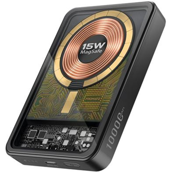 PROMATE LucidPack-10 10000mAh Transparent MagSafe 15W Wireless Power Bank - Black