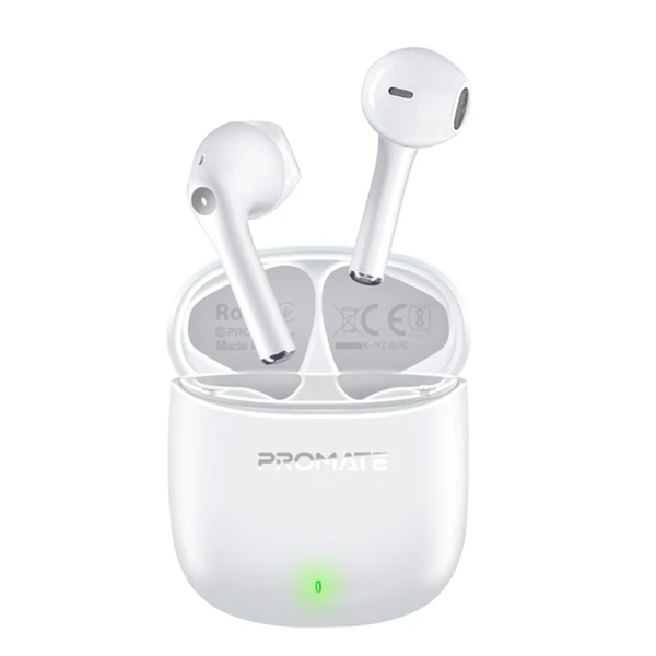 Promate Lima High Definition ENC TWS Wireless Earbuds with IntelliTouch - White Set out on a magical musical journey with Lima. These True Wireless Stereo earbuds, outfitted with Bluetooth v5.3 and IntelliTouch controls give you an unmatched, hands-free audio experience. Built-in ENC microphones, amplify your voice, providing a crystal-clear calling and listening experience. Enjoy your music for up to 7 hours per charge and up to 30 hours with the 300mAh charging case. The charging case comes with a protective Silicone case and fits easily in your pocket and bag while preventing scratches, while the additional earbud holding strap provides steady placement. Revel in music and enjoy wireless freedom with Lima.