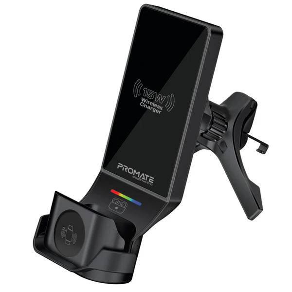 Promate MAGDRIVE-TRIO 15W 3-in-1 MagSafe In Car Qi2 Phone Wireless Charging Station Mount - Black