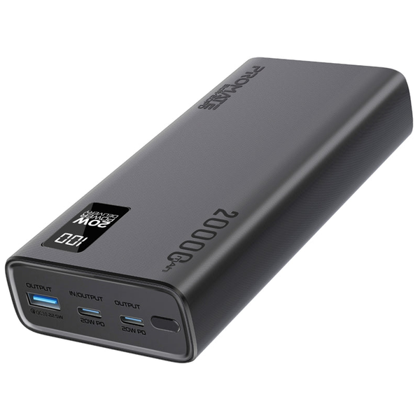 Promate BOLT-20PD.BLK 20000mAh Super Slim Smart Charging Power Bank - Black