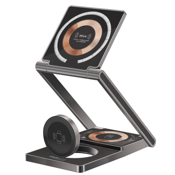 Promate 3-in-1 Foldable 15W MagSafe Wireless Charging Station.