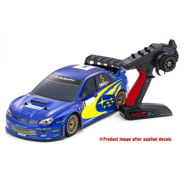 Now driving R/C is even more fun FZ02 chassis with realistic racing car body For the pure enjoyment of R/C car driving, the combination of a beautifully reproduced car body with the FAZER series chassis can't be beaten. Kyosho has taken its standard touring car chassis and given it a full model makeover that has evolved performance to a new level. A simplified design with fewer parts has improved maintenance efficiency and reduced weight while core strength and rigidity has been increased through new materials and ribbing and stiffeners on front and rear. In addition, the symmetrical chassis design synergizes excellent front-rear balance through the suspension with responsive control, irrespective of power source. Featuring slipper clutch, front &; rear gear differentials, oil shocks and full ball bearing specs, the high durability and impact resistance allows drivers to unleash the full potential of the chassis. Brake disc wheel hubs with two different offsets (0mm, +5mm) provide compatibility with 190mm and 200mm width body styles and allows the wheelbase to be adjusted to 270mm by replacing some parts (sold separately) for compatibility with other 1/10 scale body styles, in addition the body included. The Readyset package comes fully assembled and includes everything except charger and battery for the chassis, and batteries for the transmitter. - The body is the "Subaru Impreza WRC 2006" that participated in the 2006 World Rally Championship (WRC) wearing bright WR blue and six-star coloring that shines yellow. The body specifications are semi-assembled specifications in which the customer finishes the decals such as the Subaru logo to WRC specifications.- Original low-profile semi-slick pattern tires produce superior performance and combine with 15-spoke wheels for stunning visuals.- Factory-assembled Readyset package only requires 4 x AA alkaline batteries for the transmitter, and battery with charger for the chassis.- Full ball bearings that reduce drive loss equipped throughout the drive system.- Features KS202W waterproof steering servo.- Sealed differential and transmission deliver reliable performance, even on dusty parking lot surfaces.- Shaft drive full-time 4WD touring chassis(FZ02).- Equipped with a plated dummy brake disc and a painted brake caliper to improve the sense of scale.- Uses button screws with hexagonal holes in each part. Reliable tightening torque can be applied, and maintenance is possible with even fewer tools.- Since the motor mount has mounting holes according to the pinion gear, troublesome backlash adjustment is unnecessary. Supports from 29T to 37T.- Performance can be further enhanced by installing various optional parts.