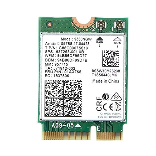 Model: Wireless-AC 9560NGW 2. WiFi Standard: IEEE 802.11AC WiFi 5 3. Hardware Interface: NGFF M2 A-E KeyMajor Chipset: Intel Wireless-AC 9560NGW 5. Target Users: Intel CPU Laptop PCs after 2018Peak Speed: 2.4GHz 300Mbps &; 5GHz 160MHz 1730Mbps 7. WiFi Encryption: 64bit and 128-bit WEP, AES-CCMP and TKIPProvides Bluetooth 5 and 2x2 802.11ac Wi-Fi including Wave 2 functions such as 160 MHz channel.Fast download and long battery life.The M.2 2230 module provides flexibility in system configuration1. only support windows 10 64bitMotherboard with CNVI interface onlySupport part of Lenovo and HP machines, please check before buying or message us 3.Specifications:Condition: Brand NewModel: 9560NGWSPS: 937263-001 0bFRU P/N: 01AX768Interface: NGFF Key E, 22x30mmIEEE WLAN Standards: IEEE 802.11a / b / g / n / acMU-MIMO: SupportAntenna Diversity: SupportWireless On/Off Control: SupportConnector Face: M.2: CNVioOperating Temperature (Adapter Shield): 0 - 80 (Celsius)Supported Operating Systems: Only work with Microsoft Windows 10Note: Windows 7/8/8.1 is not supportedOperating frequency band: 2.4G / 5G (160Mhz)Transmission speed: up to 1730Mbps (router must be 160Mhz )Bluetooth: 5.0Size: Approx. 1.2 x 0.8 x 0.2 inches (30 x 20 x 5 mm).Weight: Approx. 0.1 ozCompatibility:Works with Samsung / Dell / Sony / ACER / ISUS / MSI / Clevo / Terransforce / Hasee etc.Asus tuf b360m plus gamingAsus Z390IGigabyte h370n wifi itxFor Gigabyte Z390IZ390I b360 m aorus proDell 3060mDell 7060mDell G7Dell g3 3579MSI Z390 TOMAHAWKASRock deskmini 310For ASRock J4105-itx, J5005-itx, B360m pro42018 Hasee K680E, t96e Intel Wireless-AC 9560NGW NGFF M2 CNVI interface CRF WiFi Adapter-2030Mbps Max SpeedThe Wireless-AC 9560NGW is an NGFF M2 CNVI interface CRF (companion RF module) WiFi card. It is based on Intel Wireless-AC 9560NGW major chipset. It will provide IEEE 802.11AC WiFi 5 2X2 MU-MIMO 2030Mbps total bandwidth wireless network connection speed. It is the best option to add wireless AC network on laptop computers and industrial devices for online gaming, video streaming, online phone calls and home-office internet surfing. It also comes with WiFi Audio Adapter technology for WiFi headphones, TWS earphones, speakers, home audio systems etc audio source transmission. Drivers &; Software Downloads:https://www.intel.com/content/www/us/en/products/sku/99446/intel-wirelessac-9560/downloads.html Installation Notes:
