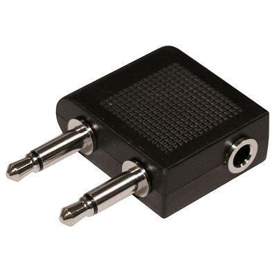 The airline adapter converts a regular headphone stereo jack 3.5mm to a dual prong 3.5mm airline jack.
