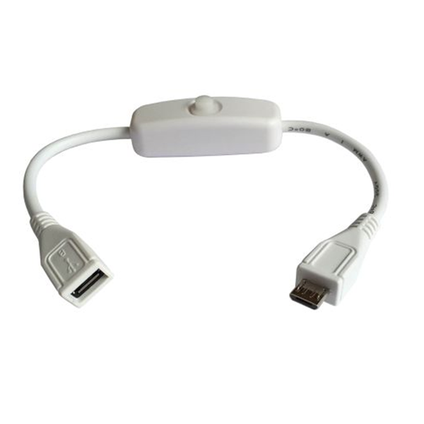 Generic White USB 2.0 Cable with Power Switch, Micro USB Type B Male to Micro USB Type B Female, 200mm Long, Inline Power Switch Cable for Raspberry Pi