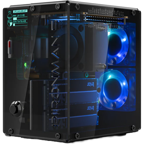 - Raspberry Pi 5-MAX PC Case: Unlock the full potential of your Raspberry Pi 5 with the Pironman 5-MAX - our most advanced case yet. Featuring dual NVMe M.2 slots with RAID 0/1 support, AI accelerator compatibility (e.g. Hailo-8L), a PCIe Gen2 switch, PWM tower cooling + dual RGB fans, dual transparent panels with RGB lighting, and a smart OLED display with vibration wake-up. All ports are optimized for cleaner cable management, including dual full-size HDMI and USB-C power. Ideal for building high-performance NAS, AI edge computing devices, Home Assistant hubs, and more. (Raspberry Pi NOT Included)