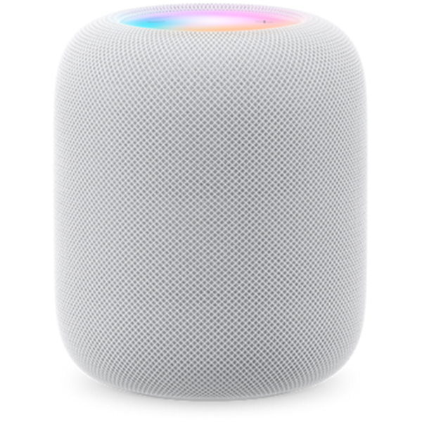 Please note: HomePod is a WiFi smart speaker and requires AC power. This product does not contain a battery and is not a portable Bluetooth speaker. All-new HomePod - Immersive, high-fidelity audio.- An intelligent assistant.- Works seamlessly with your Apple devices.- A powerful way to control your smart home.- Private and secure. Profound sound. High-fidelity audio - Amp up everything you hear. HomePod is a powerhouse of a speaker. Apple-engineered audio technology and advanced software deliver high-fidelity sound throughout the room. It intelligently adapts to whatever it's playing - or wherever it's playing - and surrounds you in immersive audio that makes everything you listen to sound incredible. Room-filling oomphA high-excursion woofer packs HomePod with deep, rich bass. Its powerful motor drives the diaphragm a remarkable 20 mm, while its bass-EQ mic dynamically tunes low frequencies in real time. Superclean bass. Fills the room. Boom. Hits the high notesHomePod has an array of five beamforming tweeters around its base. They optimize high frequencies to produce detailed, articulate audio with stunning clarity. So you can enjoy crystal-clear vocals and all the details of the instruments - just as if you were there in person. Sound all around. Enjoy a whole new level of spaciousness and layering with HomePod. Its beamforming tweeters precisely beam direct sound, like primary vocals, into the middle of the room, and reflect ambient sound, like the backup band, off the walls - for fully immersive listening. Plus, with Spatial Audio tracks, you'll experience the sense of being surrounded in music like never before.[1] Optimizes acoustics in real time. Apple silicon unlocks advanced computational audio innovations in HomePod. Using feedback from the all-new system sensor, it runs complex tuning models in real time to preserve dynamic range and maximize acoustic performance. Tuned to the room. With room sensing, HomePod automatically understands its location in a room by using its mics to listen for sound reflections. It tunes sound accordingly, so you'll enjoy the best listening experience possible no matter where it's placed. 100+ million songs? Sounds amazing. HomePod is built to bring out the best in Apple Music.[2] Listen to all of your favorite artists and songs - spanning every imaginable genre - in the highest quality, right in your own home. With effortless access to one of the world's largest music libraries, the music never really has to stop. Even more dynamic as a duo. Create a stereo pair to amplify all the music you love.[3] Just place two HomePod speakers in the same room, and you'll be asked if you want to pair them up. Get ready for a wider soundstage and even more enveloping audio than that of traditional stereo speakers. Cinematic experience. Use HomePod with Apple TV 4K to enjoy Dolby Atmos audio for a complete cinematic home theater experience.[1] Fully immersive sound. Mind-blowing visuals. World-class content. Your favorite TV shows and movies never looked, or sounded, so vivid. Whole house music. Bring multiple HomePod and HomePod mini speakers under one roof and easily enjoy music throughout your entire home. You can play one song everywhere, or jazz in the kitchen and kids' music in the little one's room. With multiroom audio, get ready to rock the whole house. Turn up the music, podcasts, and calls. From amazing tunes on Apple Music and other third-party music apps to news, podcasts, and phone calls, HomePod dials up the clarity and fullness of all the listening experiences you love.5And with AirPlay, you can enjoy even more of your favorite audio on HomePod.[4] All your devices in concert. HomePod works seamlessly with your Apple devices. Handoff lets you transfer what's playing on iPhone to HomePod - and the other way around - without skipping a beat.6 And with just your voice, easily locate a loved one or your misplaced iPhone with Find My.[7] - All your data stays yours. We never share or sell it. High IQ - Built-in intelligence that speaks for itself. HomePod comes with Siri built in. So things like setting reminders and sending messages, turning on the lights when you walk in the door, adjusting the temperature, and even DJ-ing your next dinner party - are just a "Hey Siri" away. Manage your day and control your smart home effortlessly with Siri. Hands down, the best way to run the house. As your smart home hub, HomePod lets you control your home without lifting a finger.9 With Siri and smart accessories, things like closing the garage door can get done using just your voice. And with the ability to create automations along with helpful features like Sound Recognition,10 tasks like dimming lights at night and listening for smoke alarms happen automatically. AutomationsHomePod allows you to control your smart home accessories automatically by creating automations. Easily set up your lights to turn off every night at 10 p.m. Done. Remote accessControlling your smart home while you're away is simple. Need to unlock the door for a guest? No problem. You can take care of it in the Home app. Temperature and humidityWith its built-in sensor, HomePod can detect and tell you the temperature and humidity of the room.[8] And you can set it in automations so the blinds close if the temperature hits 80 degrees. Sound RecognitionHomePod securely listens for smoke and carbon monoxide alarms.10 If one of these sounds is identified, you'll get a notification on iPhone, iPad, and Apple Watch. Matter compatibilityHomePod works seamlessly with your HomeKit accessories. And as an essential building block for Matter - the new smart home connectivity standard - it's now compatible with even more accessories.[11] PrivacyDesigned to protect your personal information. Privacy at home is more important than ever. That's why your data is stored in a way that Apple can't read. Everyone gets the message. With HomePod and HomePod mini speakers in different rooms, easily send an anno