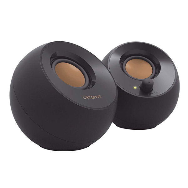 Inspired by the zen Japanese rock garden, the orb-shaped Creative Pebble is a sleek and elegant 2.0 speaker system that looks perfect in any home and office. It features a 45° elevated sound stage for enhanced audio projection and is powered by a single USB cable for hassle-free music entertainment.