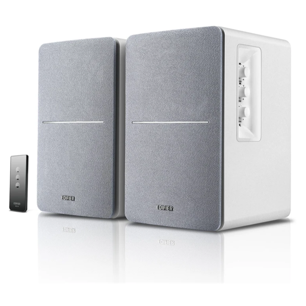 Powerful Bookshelf Speakers Combining a Retro Look - 42W RMS total power output- 4" Mid-range and bass drivers + 0.5" treble drivers- Classic wooden enclosure- Dual RCA inputs- Easy control Easy Control Use the remote control and knobs on the right panel for easy control of full functions. Room-filling Sound With 4 driver units, this product can produce 42 watts (RMS) output power, best fitting any space in your house for a great listening experience. Quality Sound Performance With the enrichment of 2-way active crossover control, this product is perfectly tuned to satisfy your pursuit of quality sound. Two 4-inch mid-range / bass drivers create rich lows. Meanwhile, two 0.5-inch silk diaphragm treble drivers produce crisp highs. Classic Wooden Enclosure Quality wooden enclosure minimizes acoustic resonance and further reduces distortion. The classic design complements any home decor as well. Dual RCA Inputs Two pairs of RCA input ports are ready for the connection with multiple audio sources, no frequent plugging and switching needed.