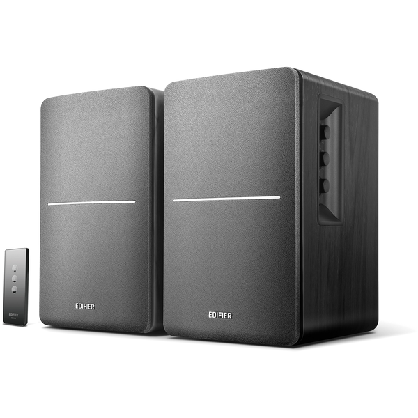 Powerful Bookshelf Speakers Combining a Retro Look - 42W RMS total power output- 4" Mid-range and bass drivers + 0.5" treble drivers- Classic wooden enclosure- Dual RCA inputs- Easy control Easy Control Use the remote control and knobs on the right panel for easy control of full functions. Room-filling Sound With 4 driver units, this product can produce 42 watts (RMS) output power, best fitting any space in your house for a great listening experience. Quality Sound Performance With the enrichment of 2-way active crossover control, this product is perfectly tuned to satisfy your pursuit of quality sound. Two 4-inch mid-range / bass drivers create rich lows. Meanwhile, two 0.5-inch silk diaphragm treble drivers produce crisp highs. Classic Wooden Enclosure Quality wooden enclosure minimizes acoustic resonance and further reduces distortion. The classic design complements any home decor as well. Dual RCA Inputs Two pairs of RCA input ports are ready for the connection with multiple audio sources, no frequent plugging and switching needed.