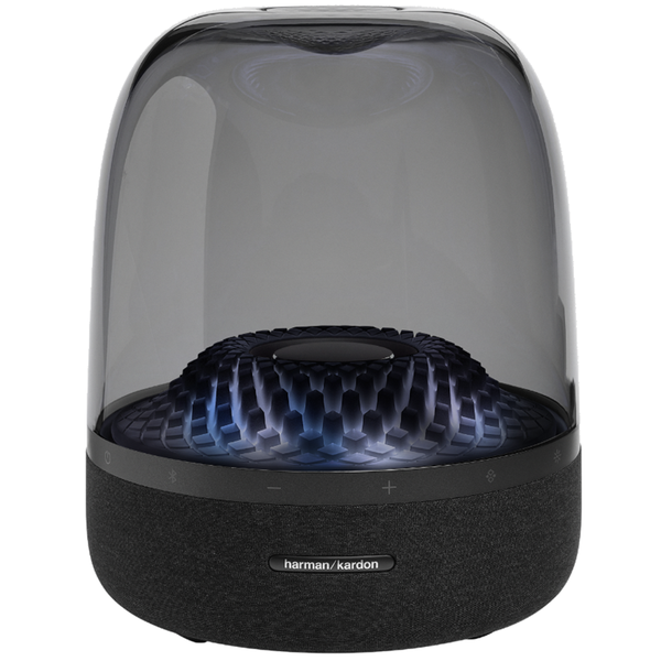 Brilliant sound. Stunning design. Inspire your senses with enchanting lights that dance to the rhythms of beautiful Harman Kardon sound. The iconic transparent dome of the Aura Studio 4 radiates a captivating diamond pattern that glows in all directions. Match one of its 5 distinct animated themes to the beat of your music. The lush visual atmosphere is as enticing as the speaker's powerful bass tones and clear, spacious audio. Create memorable experiences by pairing the speaker with more than one mobile device, so everyone can share their own vibe. SUPERIOR SOUND PERFORMANCE Listen to music the way it was meant to be heard. Your music is reproduced with pinpoint accuracy, thanks to the speaker's distinct channels and dedicated amplifiers, reproducing every sonic detail with breathtaking clarity. Feel every beat from a 5.2" down-firing subwoofer powering deep, rich bass tones. And the wide soundstage of the 6-speaker array is the next best thing to experiencing your favorite songs live. UNIQUE DIAMOND-EFFECT LIGHTING THAT DANCES TO THE MUSIC Aura Studio 4's signature transparent dome amplifies and radiates elegant ambient illumination in all directions. Inspired by the beauty of the natural world, the shifting patterns and colors of the diamond-effect lighting bring that same sense of wonder to any space. Choose between 5 distinct animated themes to match the mood of your music-and delight your senses. BLUETOOTH MUSIC STREAMING Playlists are for sharing-which is why Aura Studio 4 pairs with any mobile device for seamless wireless streaming.