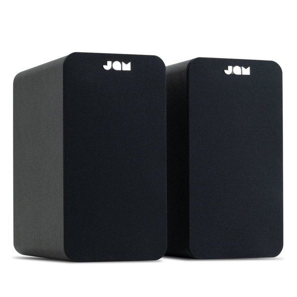 JAM Bookshelf Speakers Enhance your sound system with the JAM Bookshelf Speakers. Designed to deliver bold quality sound from the 4-inch bass drivers, 0.75-inch tweeters and rear bass port. The robust cabinet design reduces distortion and delivers a clear, rich audio experience. These are active speakers, so are great to go straight out of the box. Available in three stylish colours, Black, Wood, and Light Wood, these bookshelf speakers will fit with any décor. Wherever you listen to your music, the kitchen, your bedroom or living room, these mains powered Bookshelf Speakers can fill any space with a true bass sound. Surround yourself with your go-to albums and forget about the World around you. Bass Ports The Bookshelf Speakers bass ports deliver powerful rich sounds, allowing you to listen to the music they way the artist intended.Turn the volume up, the robust design of these speakers will keep your music clear. Bluetooth 5.0 These mains powered speakers, feature Bluetooth 5.0. Easily stream your favourite music from your phone, laptop or tablet. Or use the multiple connection points (RCA &; AUX) for a wired connection. The Perfect Match Delve into the depth of your vinyl collection as the Bookshelf Speakers can be paired to our JAM Bluetooth Turntable, the perfect match for any music enthusiast.
