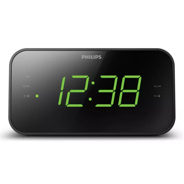 Clear, simple display with large clock digits Tell the time at a glance with this FM alarm clock radio. The large digits mean the display is easy to see from any angle, and you can adjust the brightness to suit your room. Simple controls take care of setting the alarm, volume, and tuning. Dual alarm function. Set two alarms The dual alarm function lets you set two alarms, both of which can be set to use either an alarm tone or the radio. Perfect if you're likely to snooze through the first alarm. Or if your partner needs to wake before you. Sleep Timer. Drift off listening to your favorite station Drift into restful sleep with your favorite radio station playing in the background. You can set the Sleep Timer to play your selected station for up to two hours. After your preset time has elapsed, the radio turns off automatically. Gentle Wake. Alarm tone or radio volume rises gently Ease into your day thanks to the Gentle Wake function. Whichever alarm style you have chosen-alarm tone or radio-the volume starts low and gradually increases. No more waking with a shock! Battery backup in event of power failure Battery backup ensures memory of time during power failure